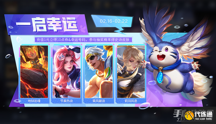 1.活动期间,召唤师们只需花费1元,将立即到账10点券并可获得幸运号码,凭幸运号码参与一启幸运活动;