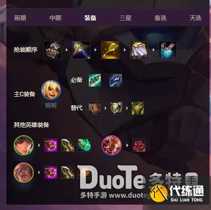 5阶段再次提升阵容质量,前面说的能追三星的都追,给主C完美装备我们就能吃分了。