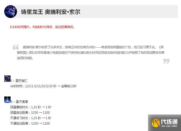 E冷却时间提升。R控制时长降低,施法距离降低。