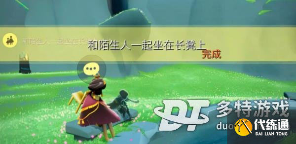完成方法:和陌生玩家一起坐在石凳子上就好了