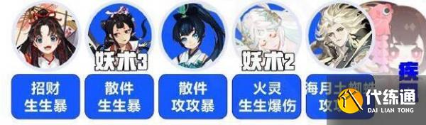 2.式神面板参考(非下限)∶萤草1.93, sp花2.24,因264爆伤,不见岳2372防御