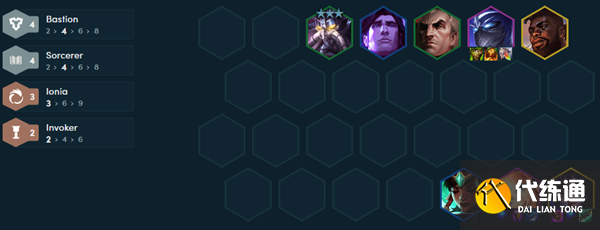 2、构成羁绊:4壁垒、4法师、3艾欧尼亚、2神谕