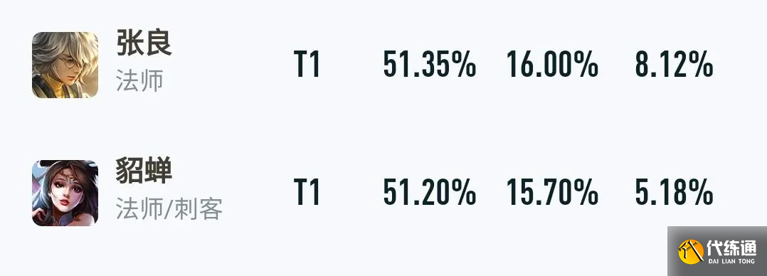 要说这中路的T1榜,那可真的是百花齐放了,炮台、法刺和工具人都能够在榜单中占有一席之地。需要提一下的是,在茶茶看来,T1榜单中的貂蝉和张良其实应该细化到T0.5中,这两位的出场率都在15%以上,且胜率都为优秀的51%,综合来看,两个英雄都只是在出场率上略逊诸葛亮一筹,但是对局表现完全不输诸葛亮,因此是完全可以排入T0.5的榜单之中的。