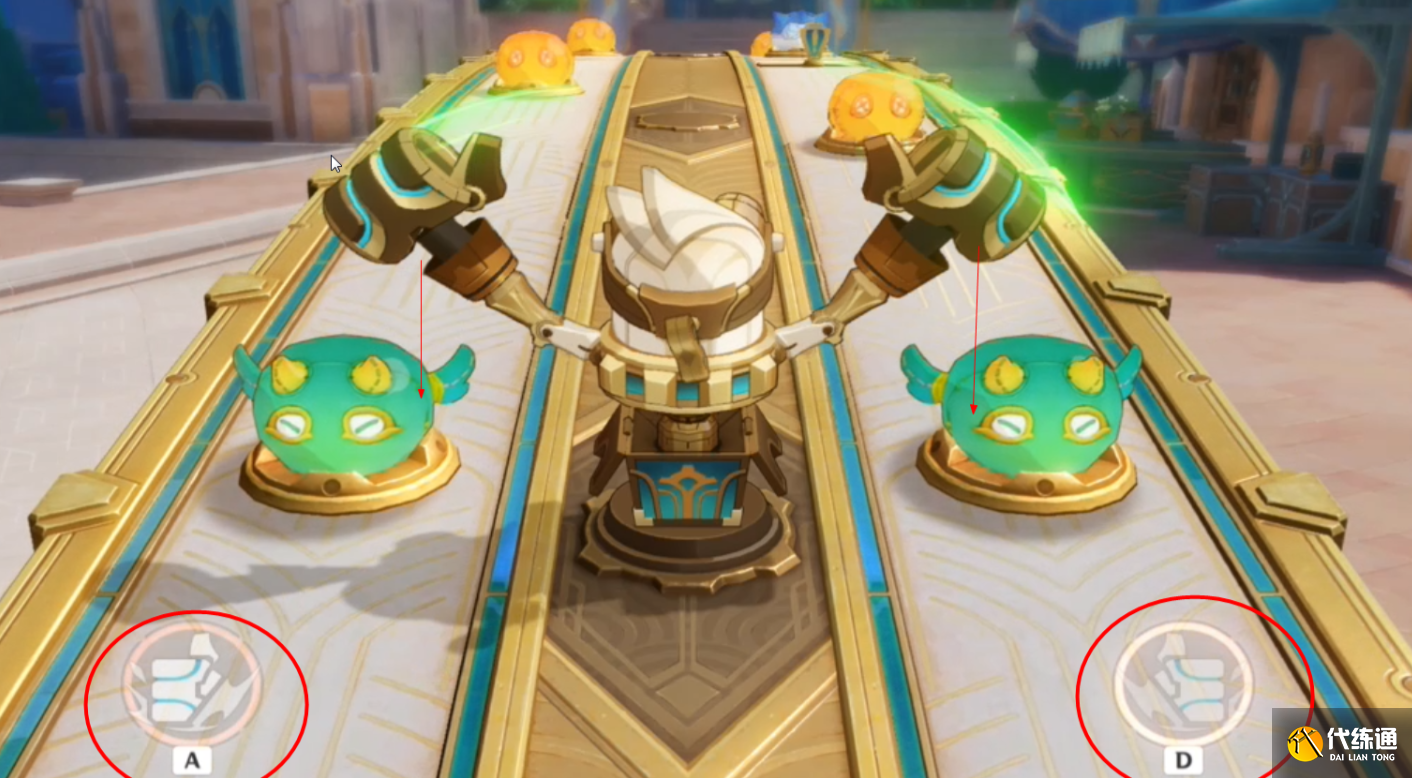(1)第三阶段的玩法,增加了左右并排的绿色玩偶,需要同时按(A,D)键,最后一次的难度又有所增加,单个的黄色玩偶,单个的需要蓄力击破的蓝色玩偶,并排的双按键绿色玩偶,技巧就是看着眼前的,余光扫向远处即将到来的,即是做出提前操作。