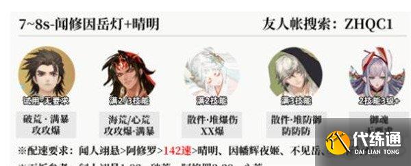 2、阵容二:7~8S-闻修因岳灯+晴明