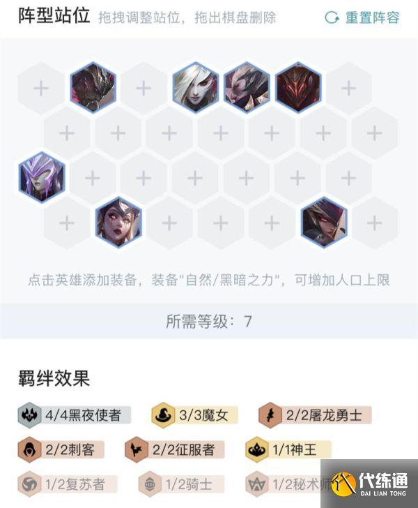 基本阵容:4黑夜,3魔女,2征服,2屠龙。