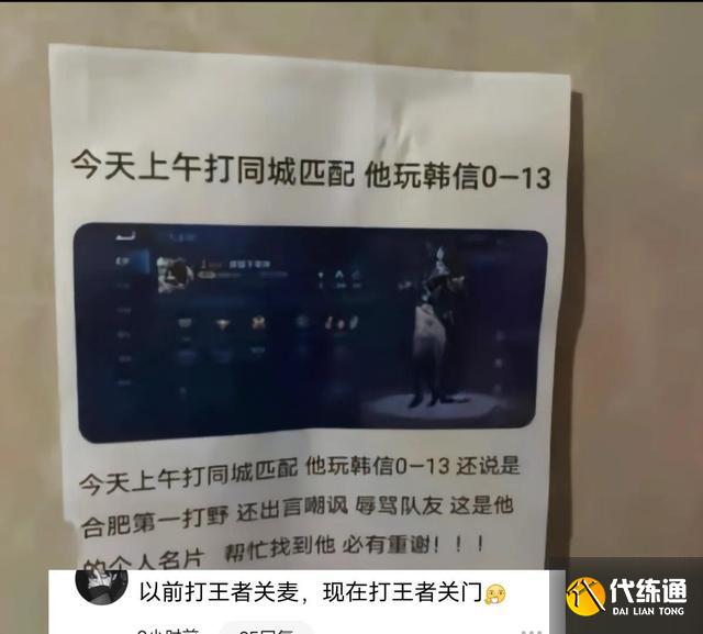 我们从这个地址当中也能够看出来,这个玩家在玩游戏的时候,他的队友玩了一局,韩信坑了他,然后他贴了一个寻人启事。如果这张寻人启事贴在人流量比较大的地方,说不定那个玩韩信的玩家自己就能看得到。