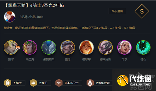 黑鸟天骑阵容可以说是当前版本比较强势的阵容之一,而在黑鸟天骑阵容中,包含有多个阵容羁绊,而这些阵容羁绊分别为6骑士羁绊、2神王羁绊、3圣光卫士羁绊、2神佑之森羁绊、2铁甲卫士羁绊,这些阵容羁绊将可以为这一阵容带来不一样的效果,有些阵容羁绊可以把该阵容的输出能力进行提升,有些阵容羁绊则可以将该阵容的攻击力进行提高,还有些阵容将可以把这一阵容的护甲进行增加。