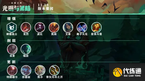 以上就是关于国服11.13版本中更新改动的全部内容了,玩家们可以根据一些改动来重新的制定上分的阵容。