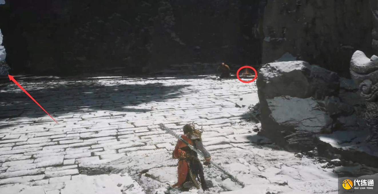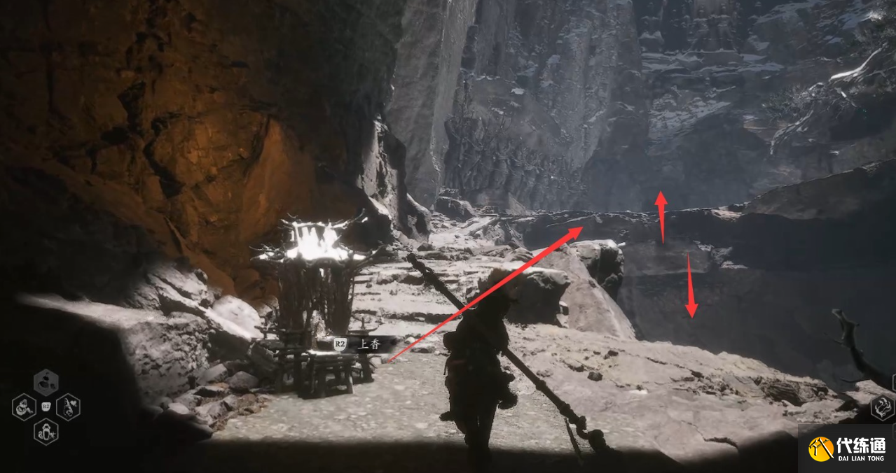 2、不白打到一半会逃走,不白逃走后,先不进洞去追。从旁边山崖跳下去,下面有隐藏的空间可探索。