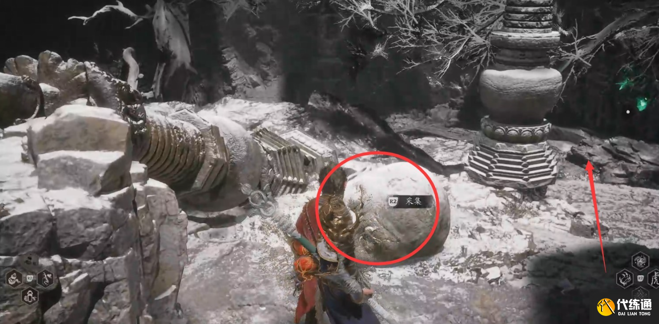 3、跳下来后,拿到下面石柱上的灵蕴。
