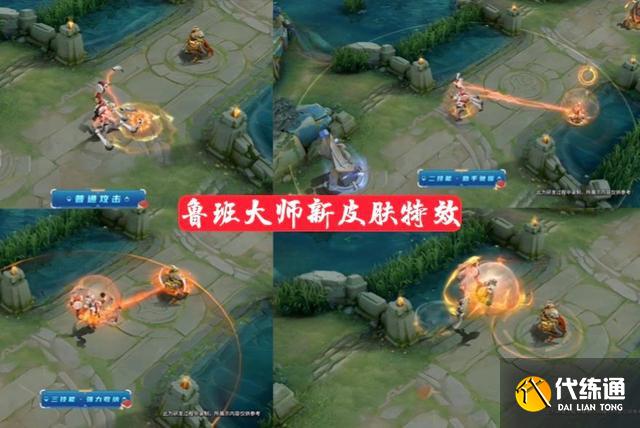 鲁班大师这款新皮肤在游戏中的技能特效有一点像橙色,由于这款皮肤的品质只有勇者,所以在技能特效表现方面只会比伴生皮肤强一点点,并且在模型上面也没有太大的改变,这一点是和鲁班七号的新皮肤是不一样的,不过在技能特效中依然使用了很多乒乓球元素进行设计,一技能落地的时候就会有一个圆形的乒乓效果,二技能的链子,头上的标志也是一个乒乓球,看起来非常不错。