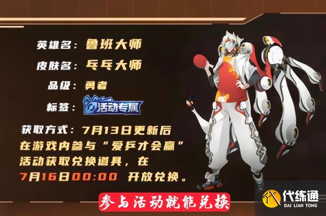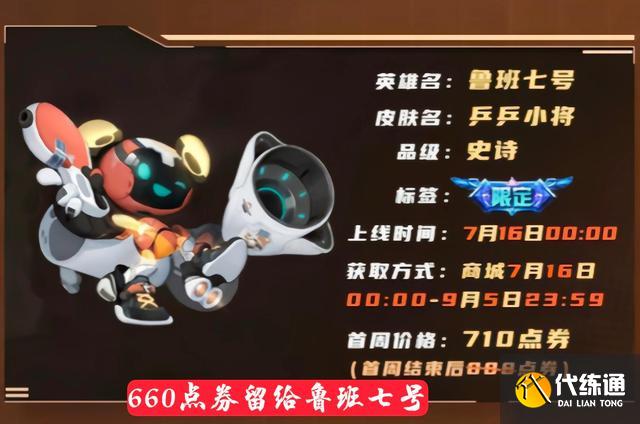 另外值得注意的是,鲁班大师的皮肤是可以免费获得的,等到7月13号版本更新的时候,就会上线一个新活动,大家只需要积攒道具,等到16号的时候就可以免费兑换,也就是说这一次的这两款皮肤,大家只需要660点券,就可以全部拿下了。