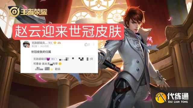 大家要知道,虽然我们目前还不能断定拿到皮肤的就是赵云,但是我们可以锻炼一点,那就是世冠皮肤,他100%是传说级皮肤。根据最近几个传说皮肤上架的品质来看,官方对于传说级品质的皮肤是有所提高的,所以我个人觉得世冠皮肤一定不会让玩家们失望。