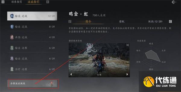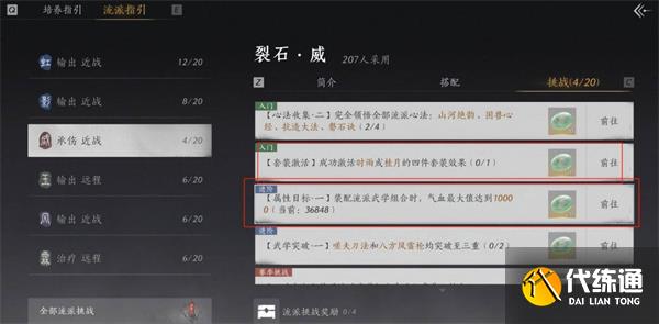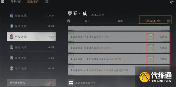 提高流派武学的等级:流派挑战的奖励是与武学的等级挂钩的,所以尽量提升各个流派的武学等级,达到30级后,可以解锁更多的挑战。
