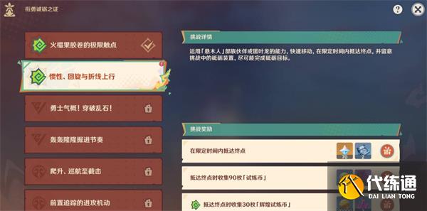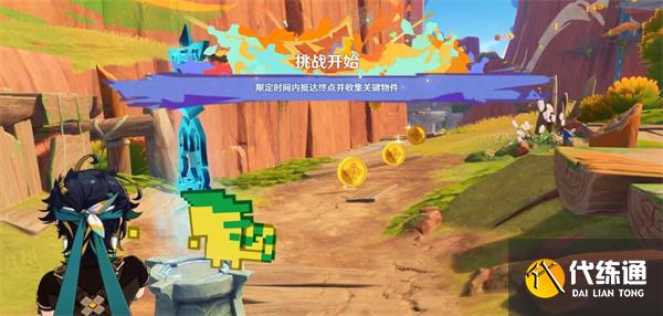 在限定时间内抵达终点,并收集90枚「试炼币」。