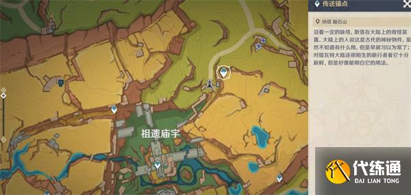 传送点:首先,你需要传送到祖遗庙宇右上角的传送锚点。