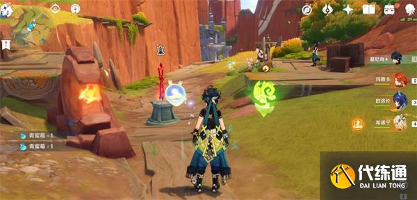 从传送锚点跳跃至悬崖下方,你会发现底座附近有基尼奇,与其对话后,基尼奇会离开。