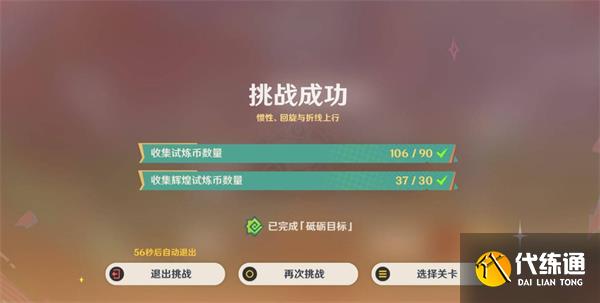 若你未能成功收集光辉试炼币,可以选择按ESC键重新挑战(注:重新挑战是重新开始所有挑战,而不是仅重新开始砥砺目标挑战)。