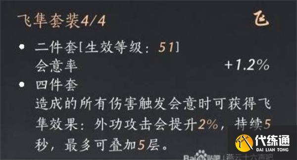 装备选择方面,推荐选择飞隼和鹰,因为多段攻击和持续伤害可以轻松叠满这两个装备的效果,使角色既猛且耐打?。