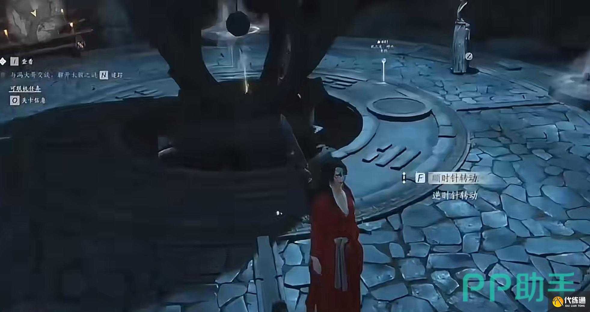 这时需开启听风辨位就可以顺利发现三个机关的位置,这时在按照顺序将其依次解开,解开之后就可以继续与天不收进行对话,这时就能开启通往湖底的通道。到了湖底之后就会发现一到石门,我们要按照北东南西的顺序踩下各个机光,这样就能开通石门。