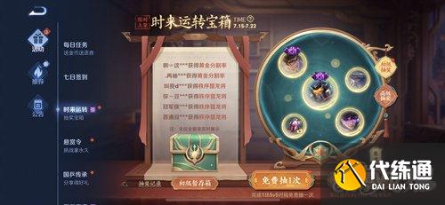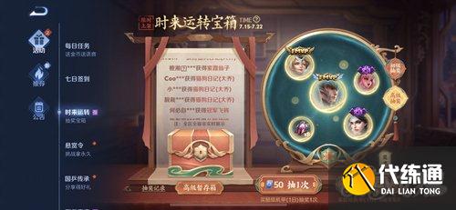 时来运转活动的时间是7月15日-7月22日,活动的位置在游戏主页-活动面板-【时来运转】抽奖宝箱。
