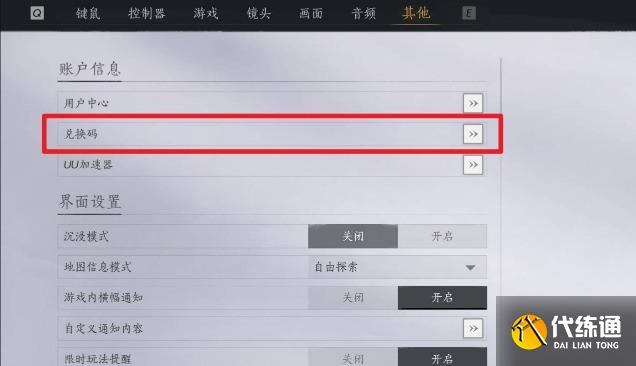 2. 跳转界面后点击上方的【其他】按钮,接着找到下方的【兑换码】选项。