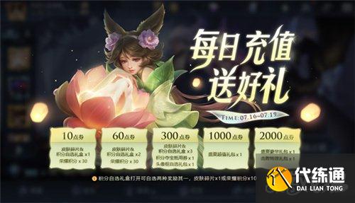 王者荣耀7.16每日充值活动开启,每日充值送好礼 。