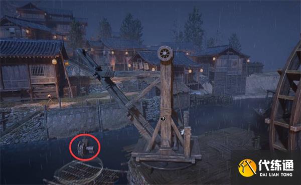 乘船出发,抵达后穿过房屋,遇到一对母子,按下按钮启动水龙头喷水,使用太极将水射到水车上以启动机关。