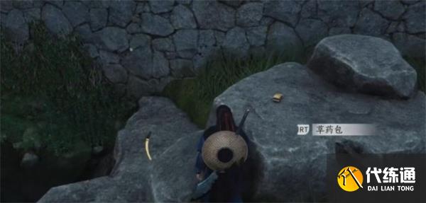 在杂卖场与王奇对话后,沿着东边水流的岸边找到草药包。