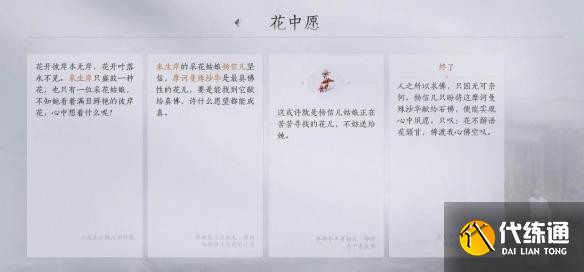 ?燕云十六声来生岸之一花中愿任务?是一个需要玩家前往来生岸与杨信儿对话,并找到摩诃曼殊沙华(曼殊沙华)的任务。