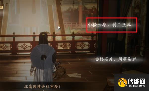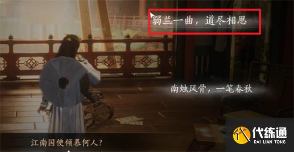 17、进入包厢进行调查时,选择线索:“金陵使者”、“若兰一曲”、“小楼云华”。