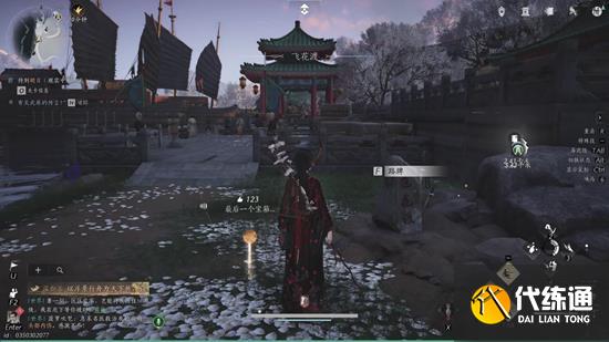 水池里的钱袋子:沿着水池走一圈,使用“摄星取月”技能将水底的钱袋子勾出来。