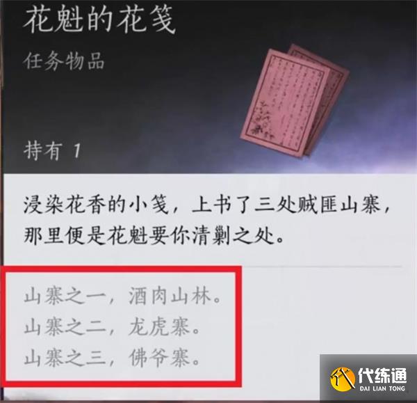 4、此时花魁会给你花笺,随后清理上面的三个据点。