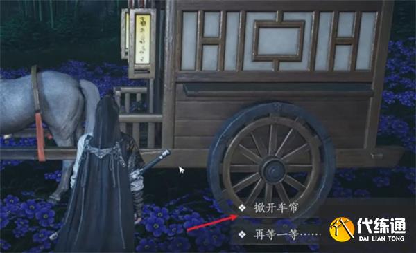 3、随后我们接着向西走,找到马车和花魁,接着进行对话。