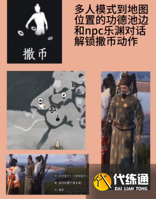在这里有一个功德池,玩家进行互动就能获得【撒币】这个动作。
