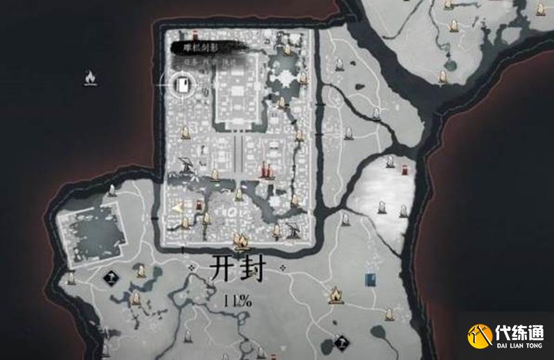 镖局任务的开端是进入赵普的家,首先,你需要找到赵普家的位置,在上图所示的开封城内。为了不惊动守卫,钻过墙缝进入赵普的家中,进入后,会见到赵普的长子赵承宗,需要找到一个办法打碎石碓,救出蛐蛐。完成后,赵承宗会带你从水池里潜出,然后跳到房顶,跟踪他们,最终见到赵普的夫人。