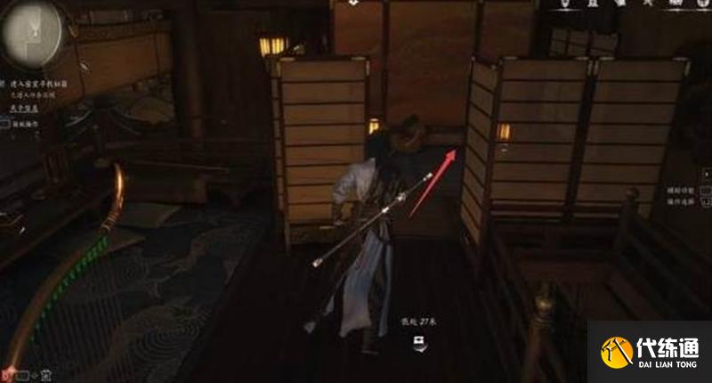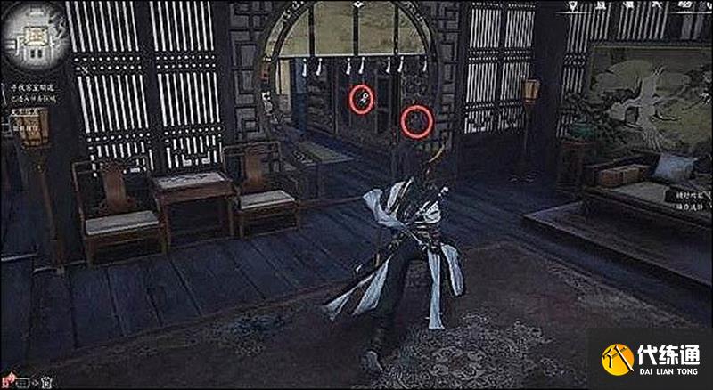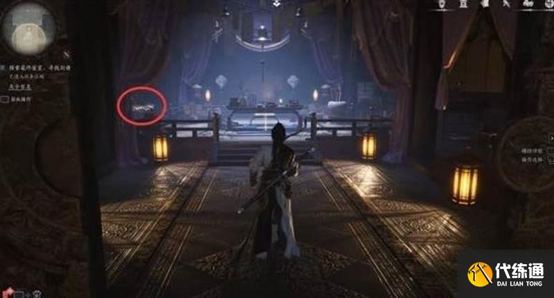 与赵承宗对话后,告诉你需要找到一把飞镖才能继续下一步,需要从房顶绕到后面,找到一个没有守卫的地方进入屋内。屋内有一把小锁,需要偷到钥匙才能打开,找到飞镖后,使用它启动大厅左侧柜子上的机关,打开密室暗道。