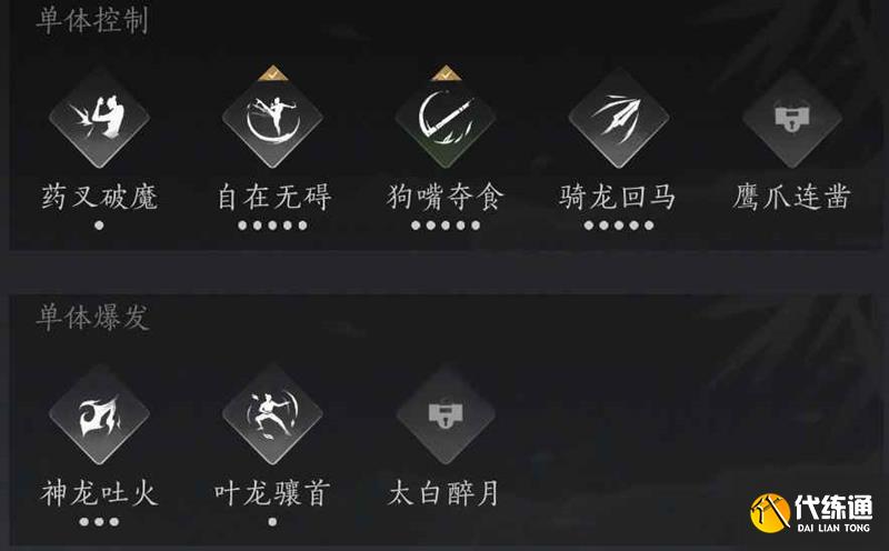 先使用金蟾奇术打出蟾毒,再用狮吼正声引爆蟾毒,狮吼伤害+50%,适用于秒杀群体小怪。