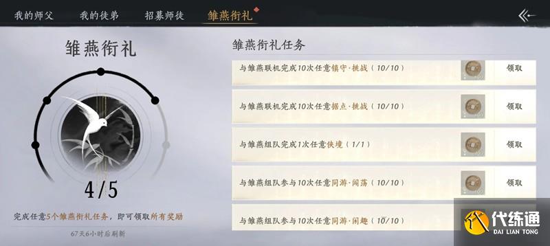 其中有四个日常任务大家应该都完成了,就差带新人。