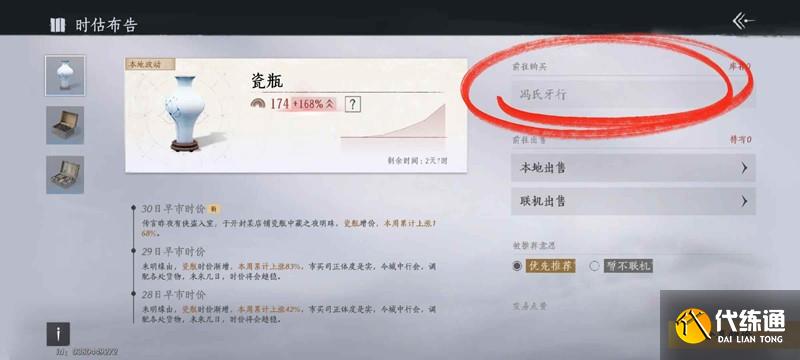 一般来说涨幅300%为最高,涨幅280%以上就可以卖出,同百业可以减税,同等条件下优先级更高。好像没有一个专门的百业高价公示,所以只能加百业成员的好友,在好友价格那里查看了。查找高价可以在门派频道查看,有的鼠鼠会在门派里面发高价的老师id。也可以在燕语阁市买司查找高价,会有高价公示,左上角上麦的基本上都是公示的老师可以直接申请联机,见p6。直接在市买司刷新他人价格不是很推荐,比较麻烦而且难以刷出高价。