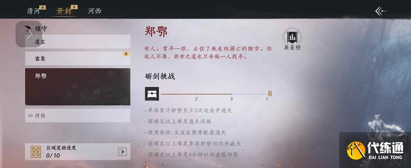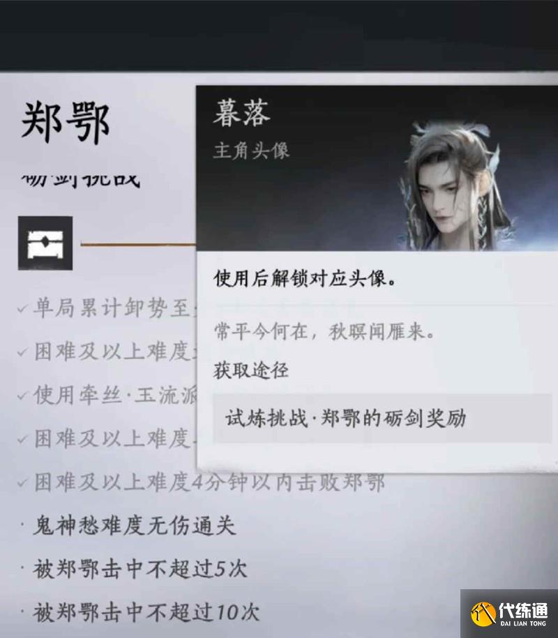 燕云十六声郑鄂试炼攻略 郑鄂试炼头像怎么获得