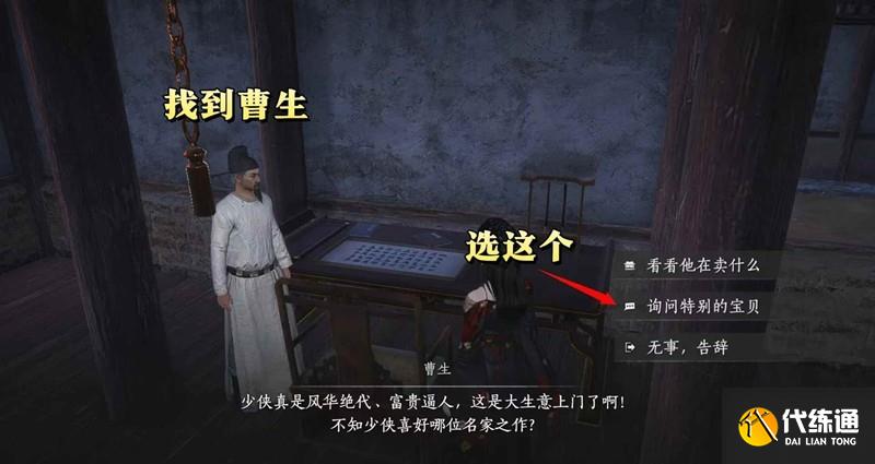 P4图:进到书院里找到曹生跟他对话选择第二个“询问特别的宝贝”