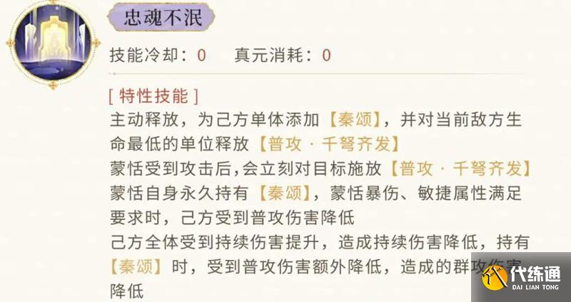 忘川风华录蒙恬技能解析 秦颂状态与反击机制详解