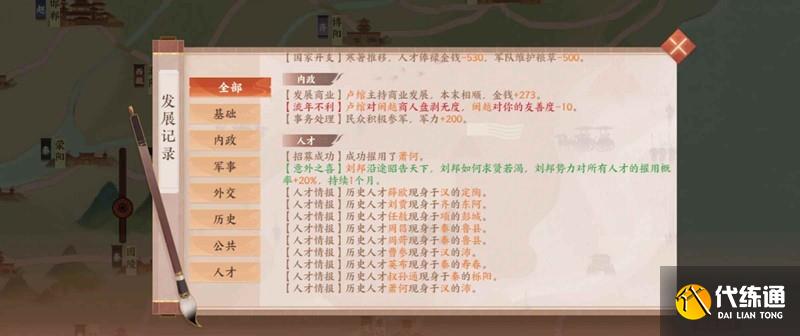 1.开局第一个回合和大秦本纪一样,内政也不会加太多钱粮,喜欢赌一把的可以和大秦本纪直接招募商鞅一样,开局直接让刘邦樊哙去招募萧何,如图,比较走运,测试的这一把第一回合萧何就来了。这里喜欢赌一把的朋友记住了,凡事留一手,第一回合不管你是大秦还是楚汉,赌这一手的不要把开局所有人才放去招募,这样会白白浪费一个行动点,所以可以让刘邦樊哙去招募萧何,剩下卢绾去内政,蚊子腿再少也是肉。