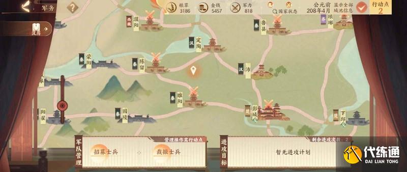 2.不管萧何来没来,第二到第三个回合记住把兵招募到800以上,任务要你攻睢阳,这里800兵就不会吃你太多钱粮的。