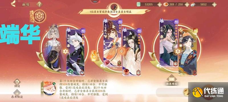 3、端华:需要流血队,不要带直伤名士 会把盾打出来,阵法带洛书,上一个婆婆 在boss开大的时候用免死保人