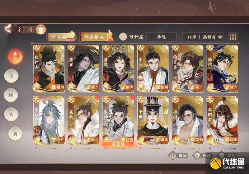 因此,端华关的推荐名士有陶渊明、白起、班昭等毒队常用名士,孙武、李商隐等真伤名士,以及幽墟的神郑和。如果没有养毒队,也没有养孙武,那么也可以把思路打开,可以选择上李煜、马皇后乃至王羲之去驱散敌方的护盾,如果担心生存压力大,可以上一个治疗位,例如白居易或者上官婉儿,不要忘了带上让人安全感满满的黄道婆,独一无二的免死机制可以让敌方boss自扣血。