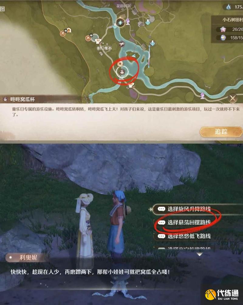 任务3 体验咚咚窝瓜杯,前往点位,找到利奥妮进行对话,点击悬荡回摆路线 进行体验