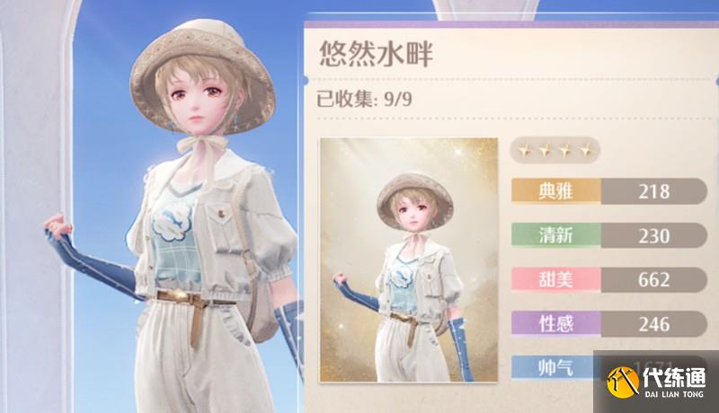 这套时装的属性数值分别为:典雅218、清新230、甜美662、性感246、帅气1671。获得悠然水畔后,玩家可以在水域附近进行钓鱼玩法,收集手绢鱼等基础材料。这些材料可以用来兑换更多精美时装。